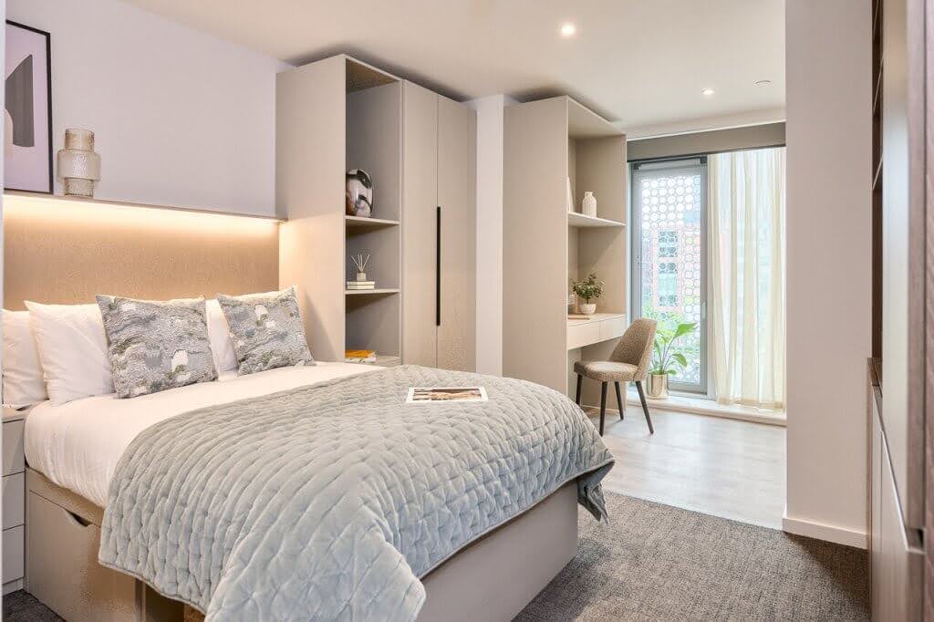 Square Gardens now benefits from a coordinated and consistent delivery of fully fitted bedrooms and bathroom pods across a large and varied accommodation scheme. The completed spaces meet the requirements of different resident types while maintaining quality, durability, and design consistency at scale.